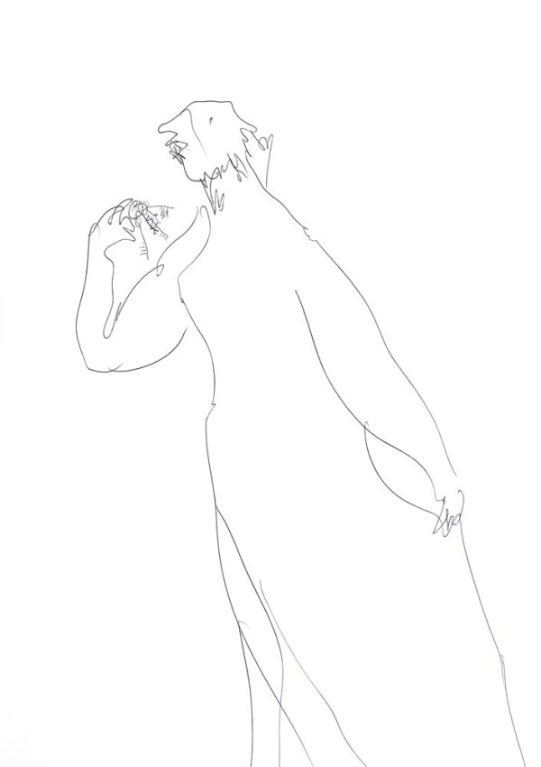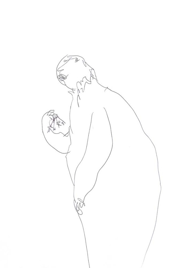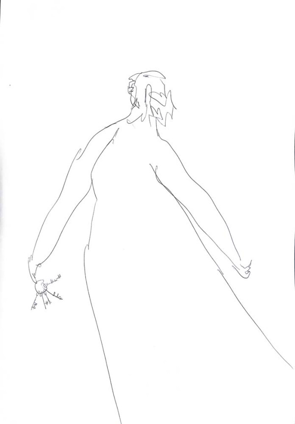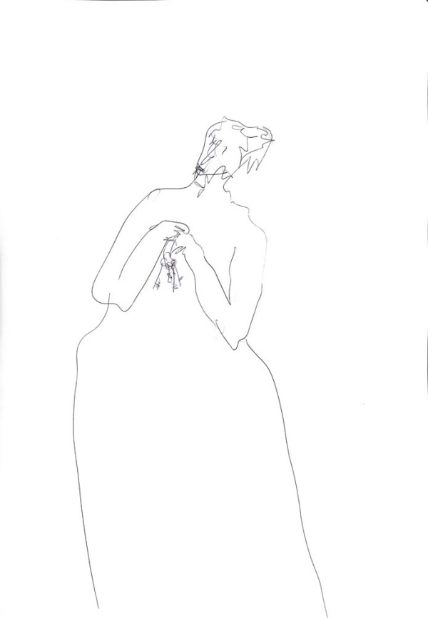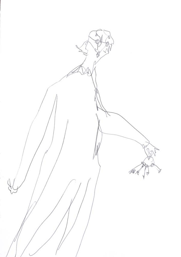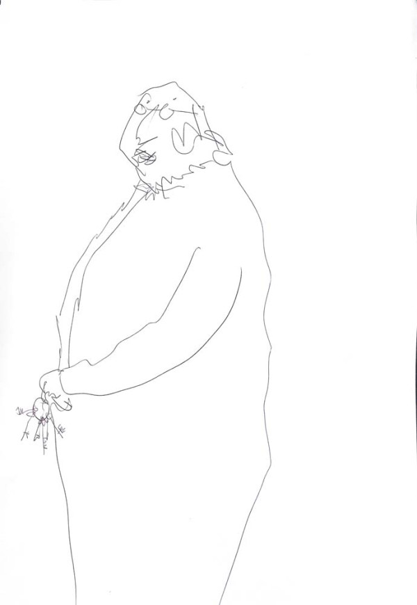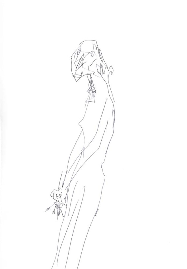 'I cannot imagine why the idea of the Chatelaines came to me, least of all in bed at 3am in the morning, as a note on the first drawing reminds me. However, I am glad it did. Each is to the same formula, which I find enjoyable: the large sweeping dress and then two moments of detail; the ring with its assorted keys and a moment of biro excitement in depicting the face with an assortment of ages and expressions of rule and authority.' - Quentin Blake, February 2021