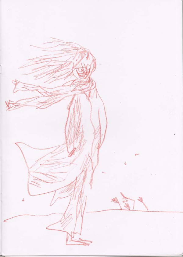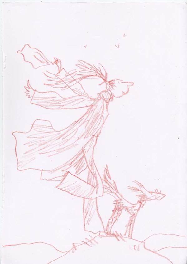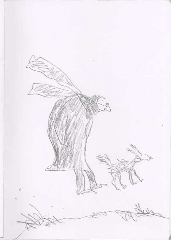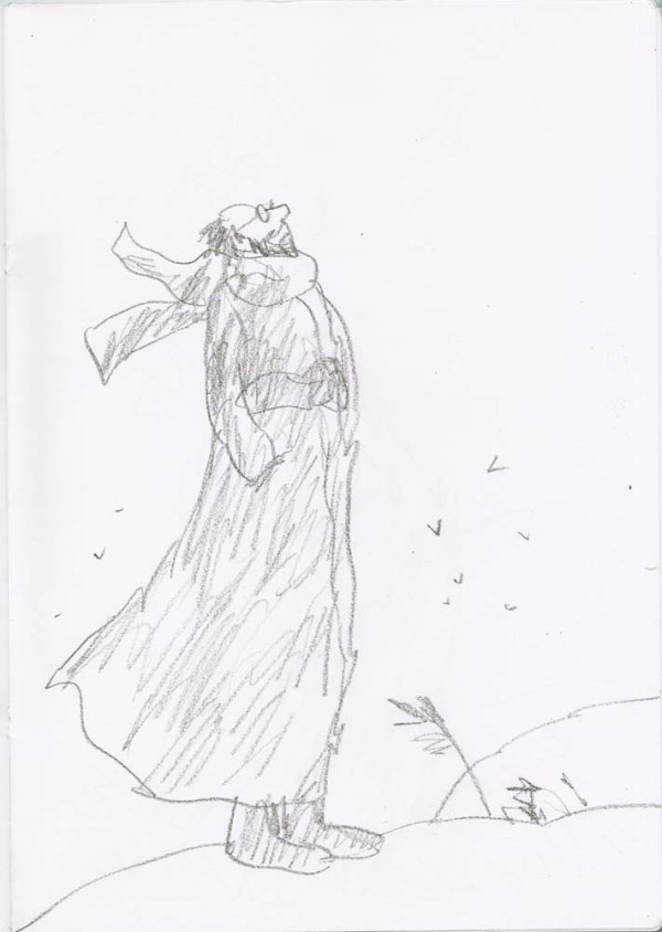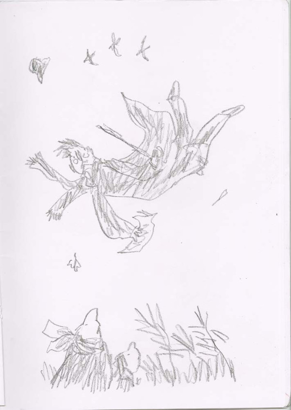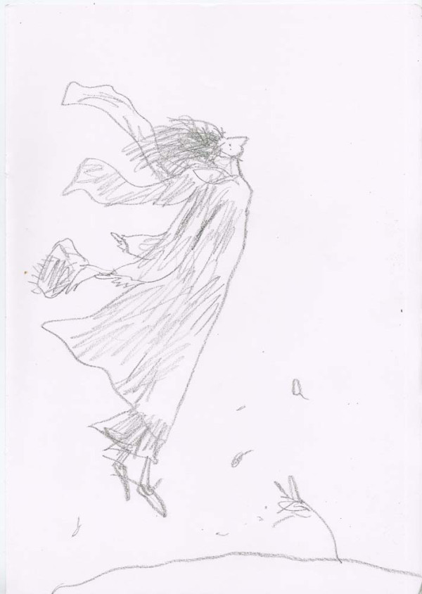 'What appeals to me about the idea of a high wind is that it allows you to get quite a lot happening visually even though you may have only one person in the picture.' - Quentin Blake, January 2020