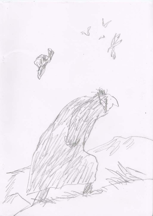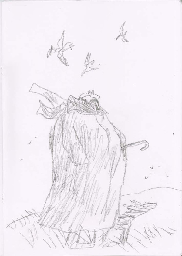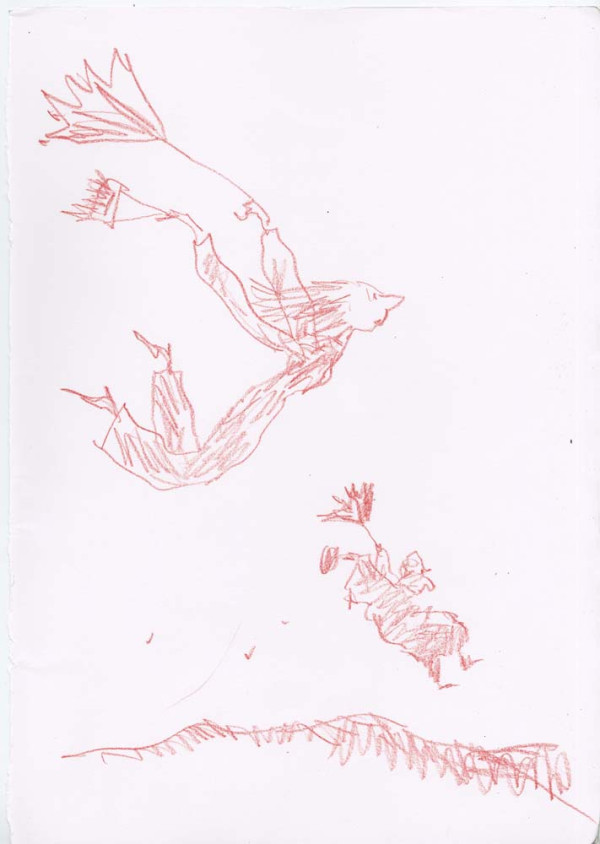 Shaded drawings in coloured chinagraph pencil, in an A3 drawing book.