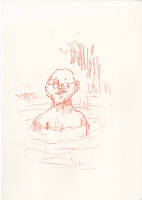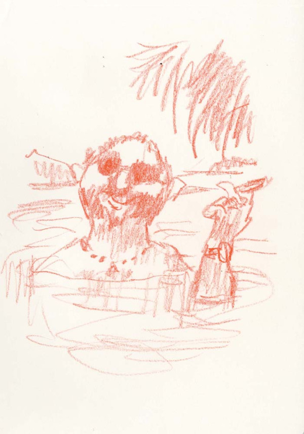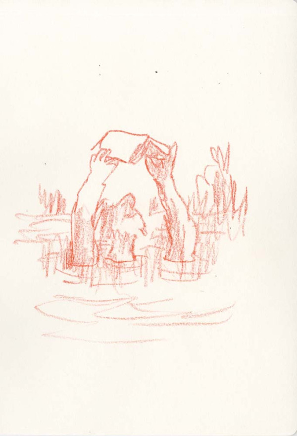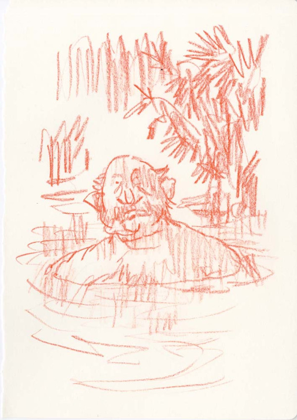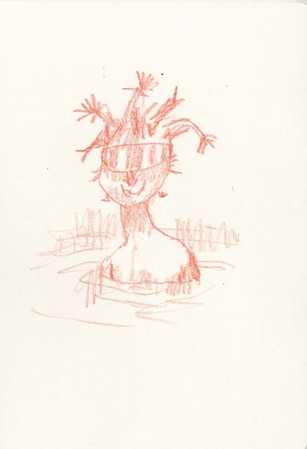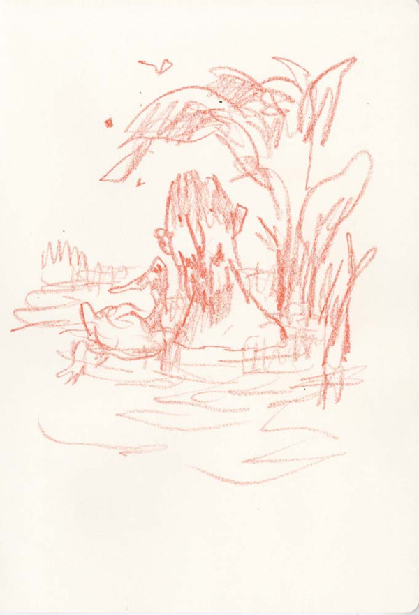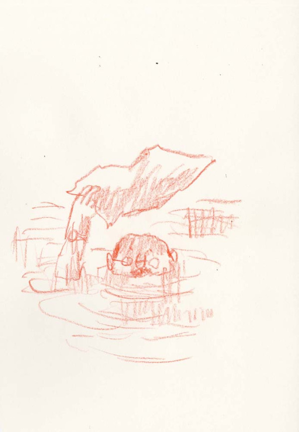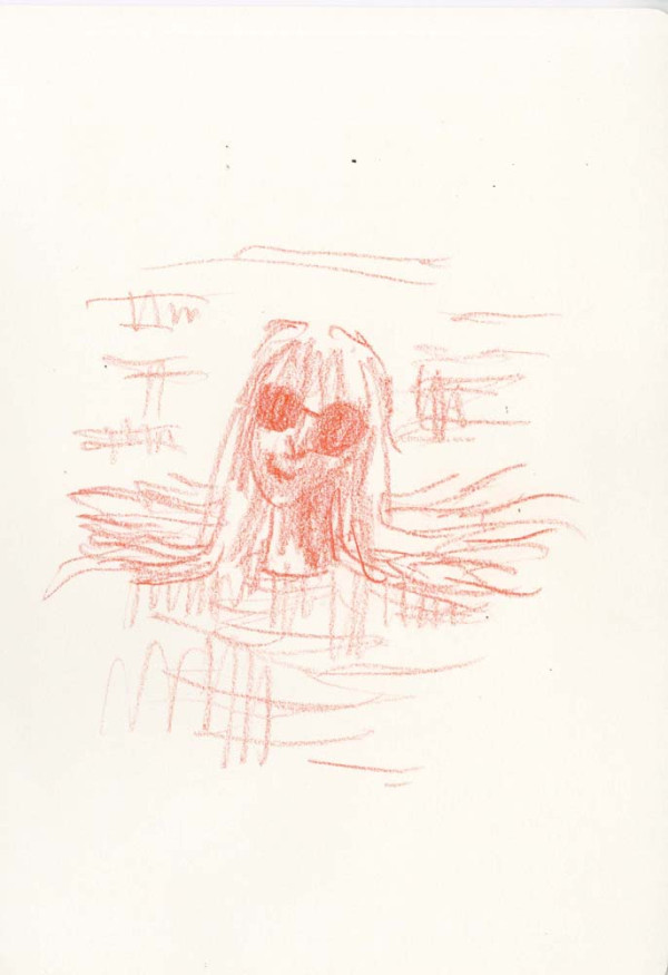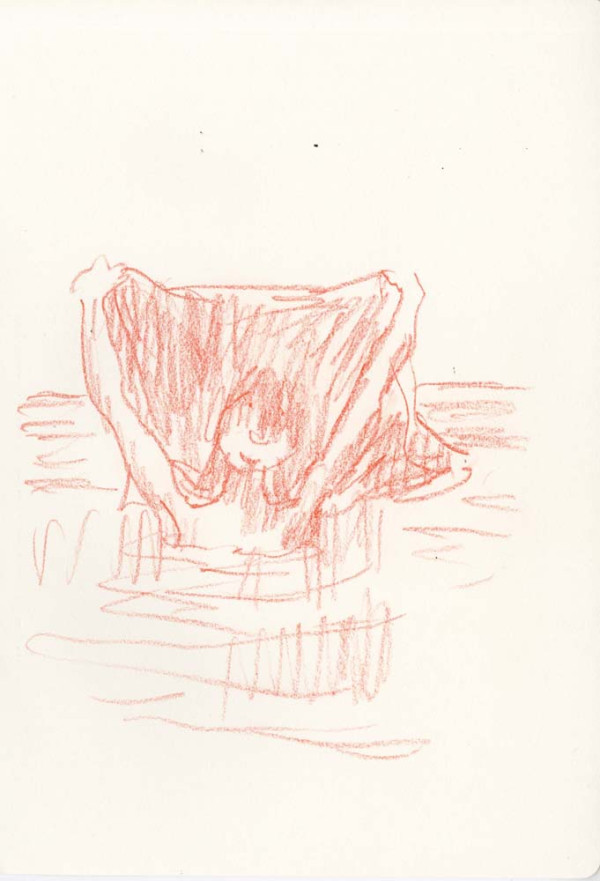 Shaded drawings in red chinagraph pencil, in an A3 drawing book. Selected from a larger set of works created in June 2019.