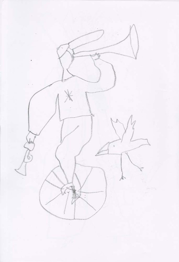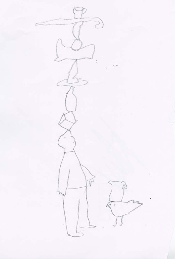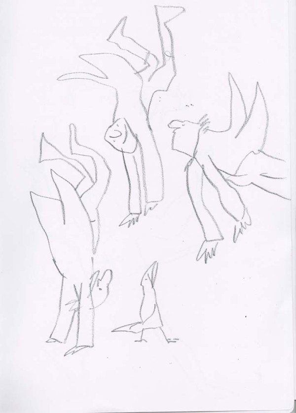Deceptively simple open line drawings worked in black chinagraph pencil in two A3 drawing books.