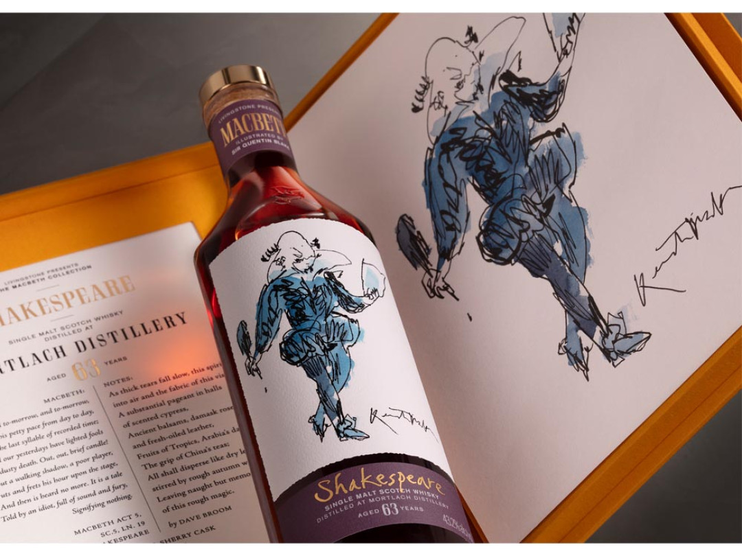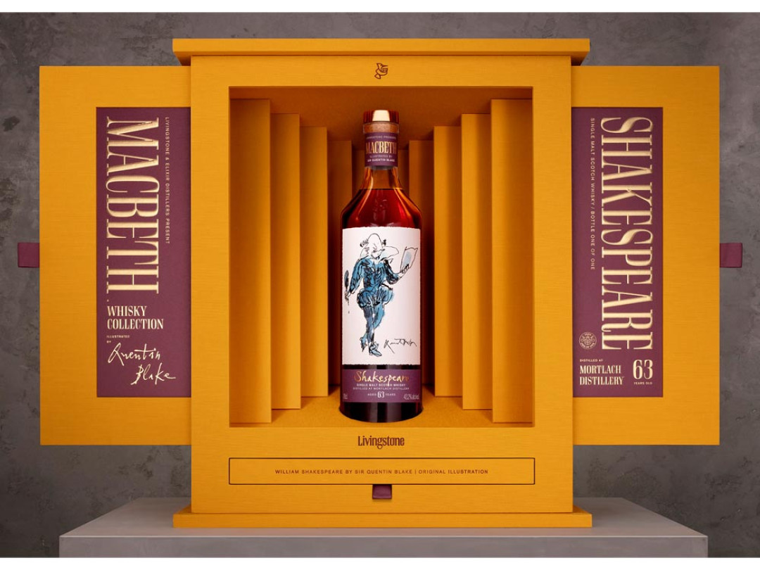 A new collaboration between Quentin Blake, whisky bottler Elixir Distillers, and creative studio Livingstone Rare has produced ‘William Shakespeare’ - a 63 year old Single Malt from Mortlach Distillery, alongside a specially commissioned original illustration signed and donated by Quentin – to appear in the Distillers’ ‘One of One’ charity auction in October.