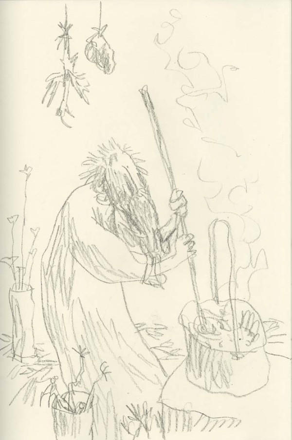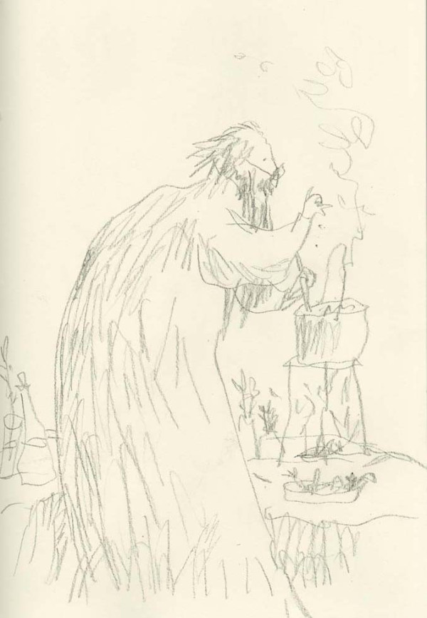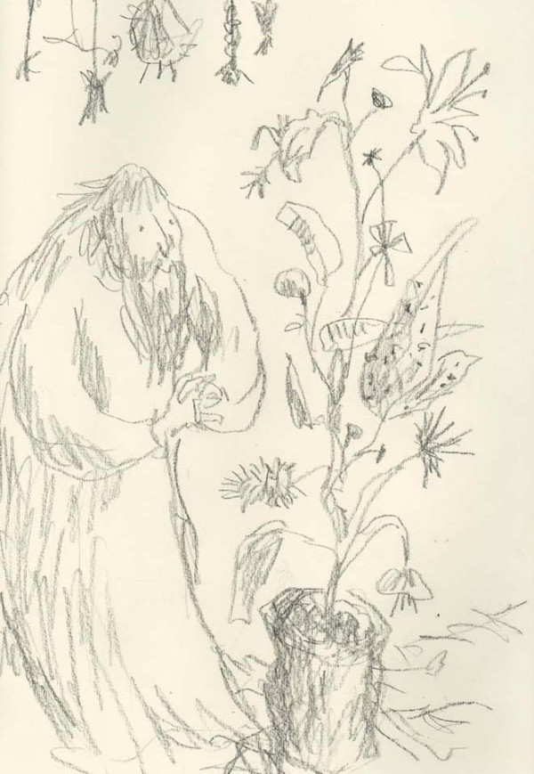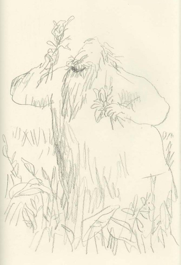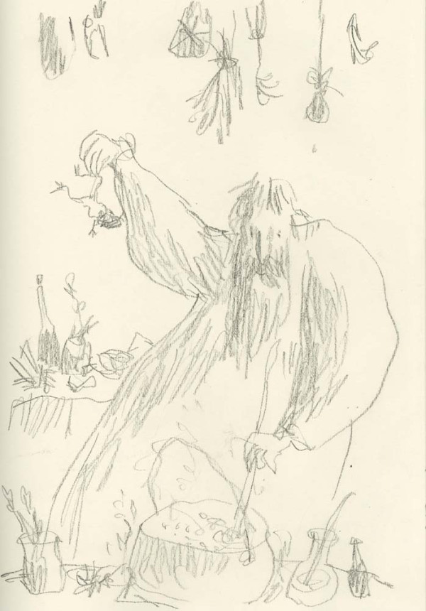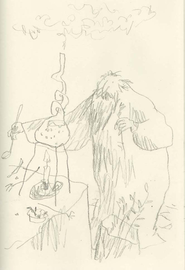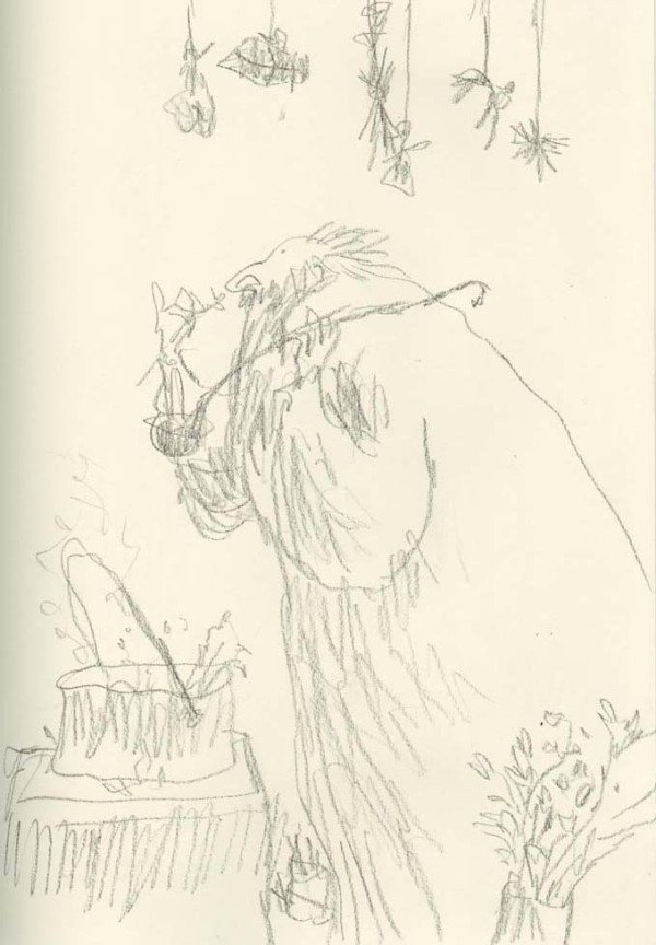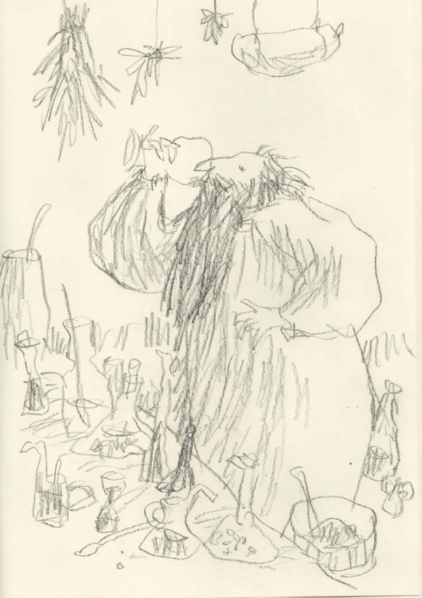 ‘In recent years I have very much enjoyed drawing pictures of people I call Sages – elderly bearded men in long sack-like garments; so that I was pleased when the idea came to me of drawing them in an activity I presume they take part in, the making of tinctures and potions. And then I think some of them might take a simpler route and eat the leaves direct from a plant. It was even more satisfactory that they could have interesting names: Apothecaries and Herbivores.’ - Quentin Blake, May 2019