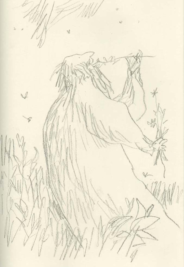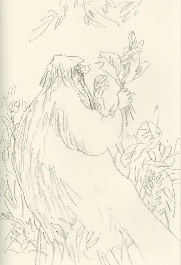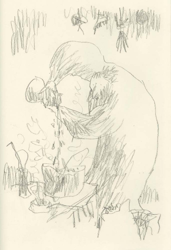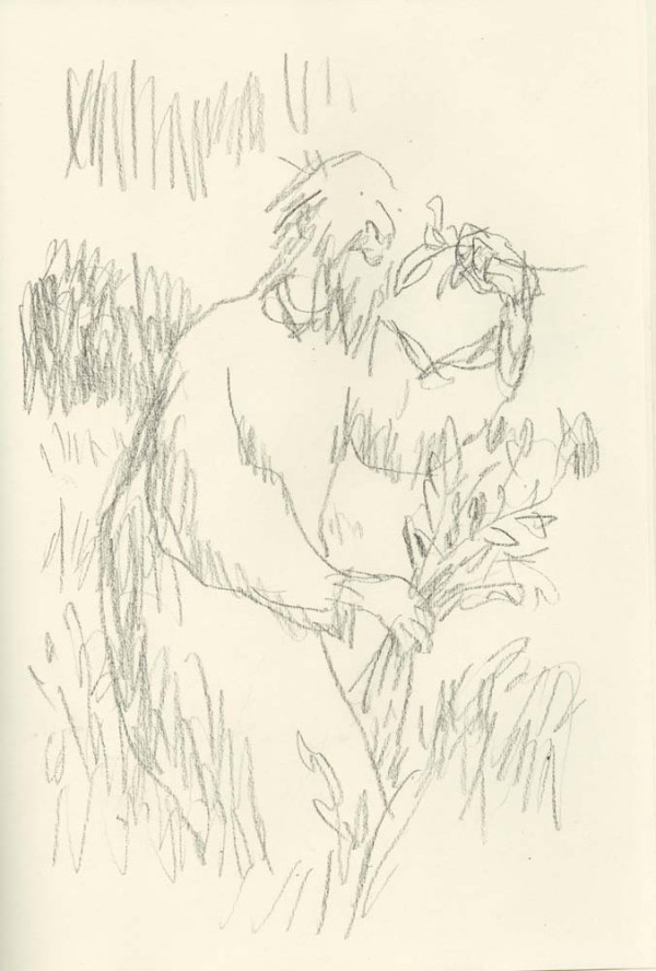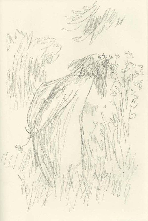 Shaded drawings in chinagraph pencil, in an A3-size hardback drawing book.