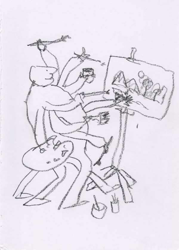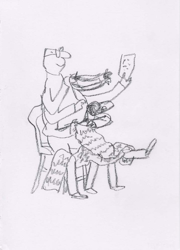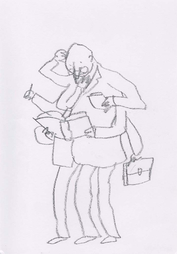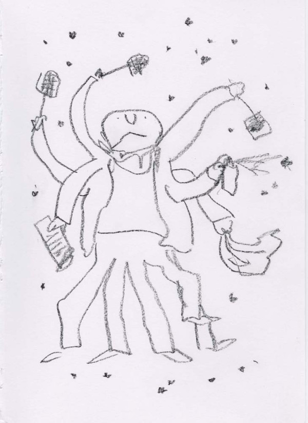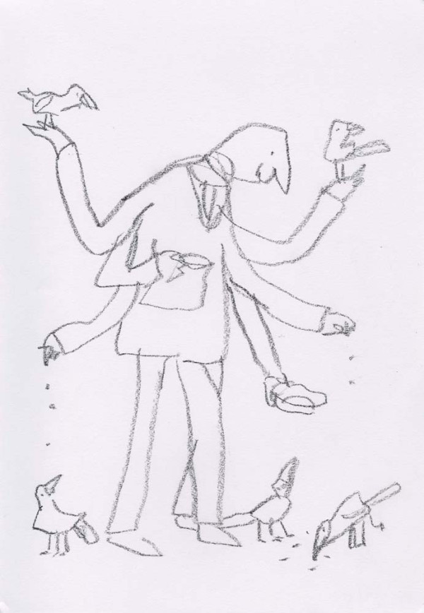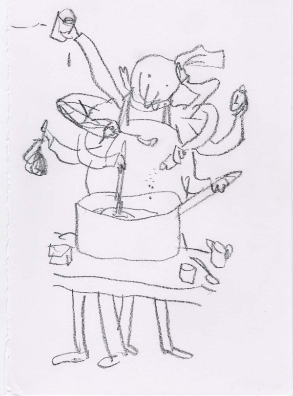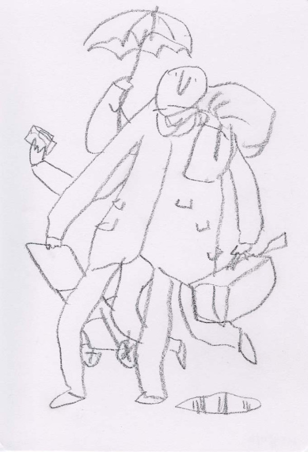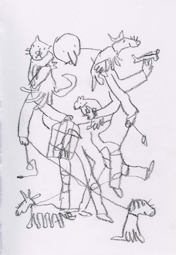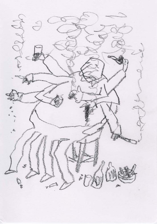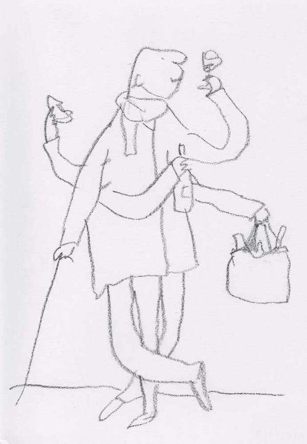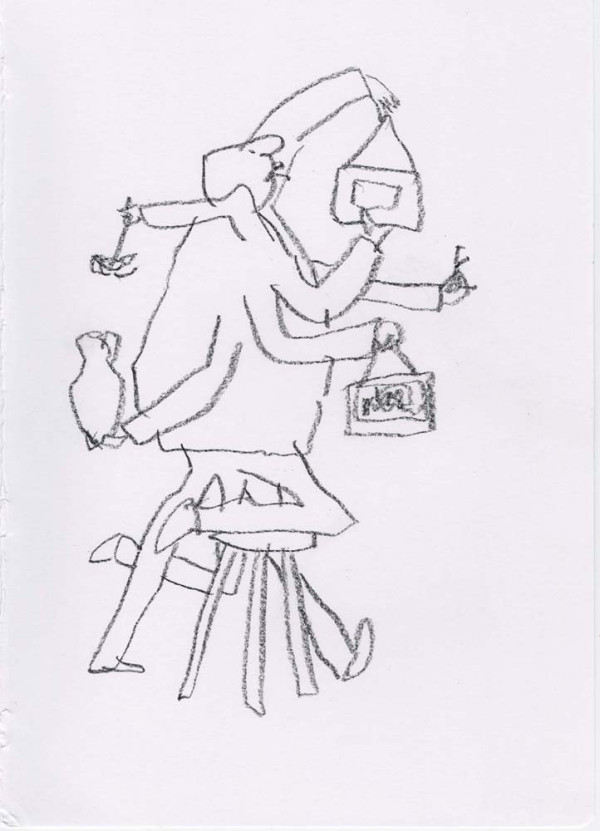 Line drawings of these ultimate multi-taskers were created using black chinagraph pencil in an A3 drawing book.