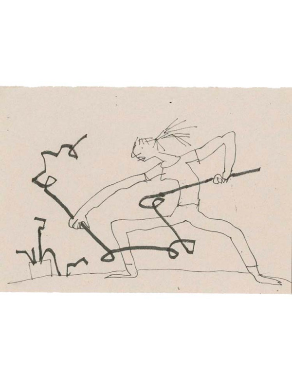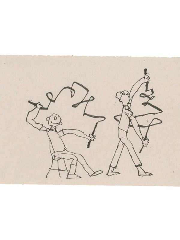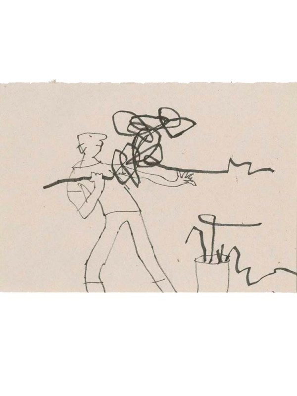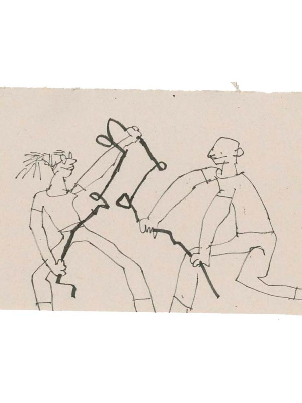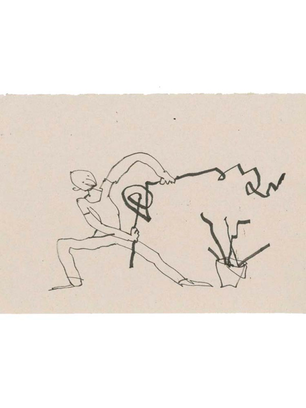 Drawn on some leftover paper found in the studio, this series of line drawings from late 2018 shows the possibilities offered by a thick black line for creating interesting shapes, or perhaps demonstrating feats of strength...