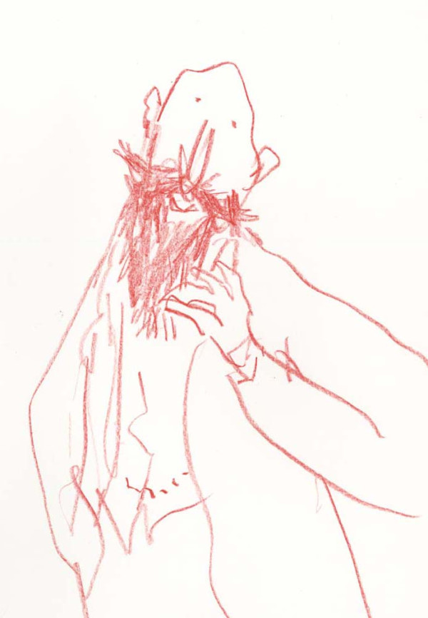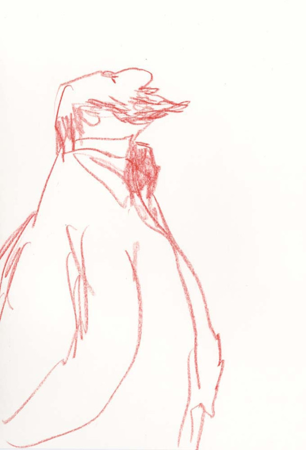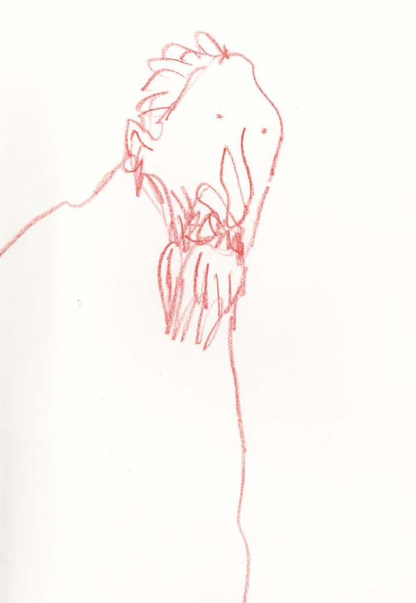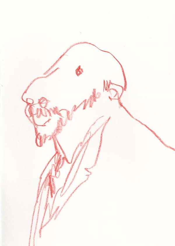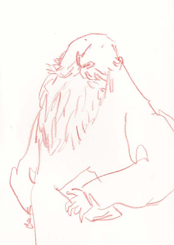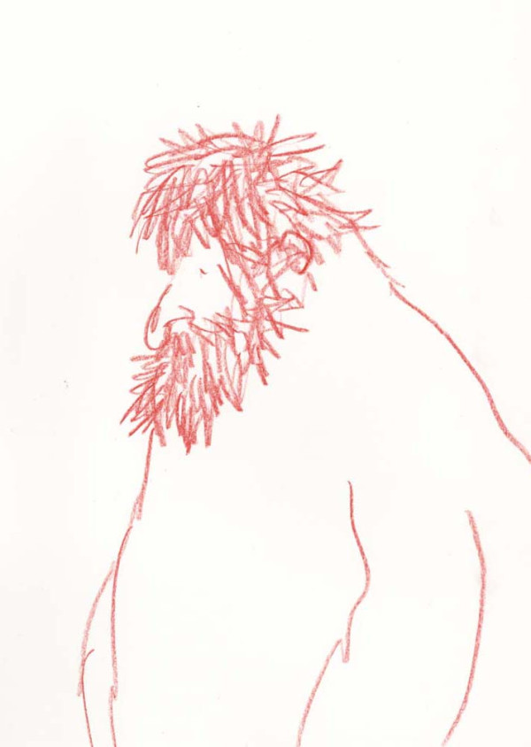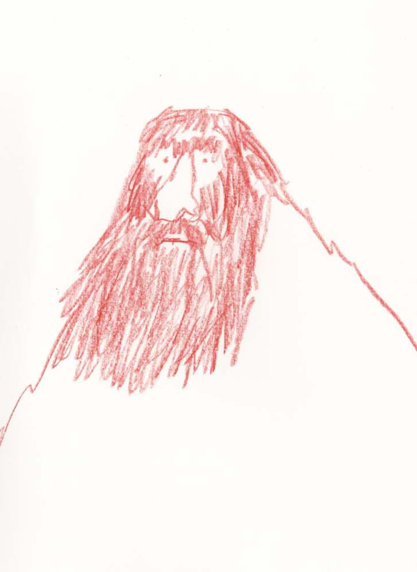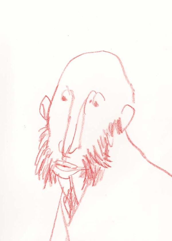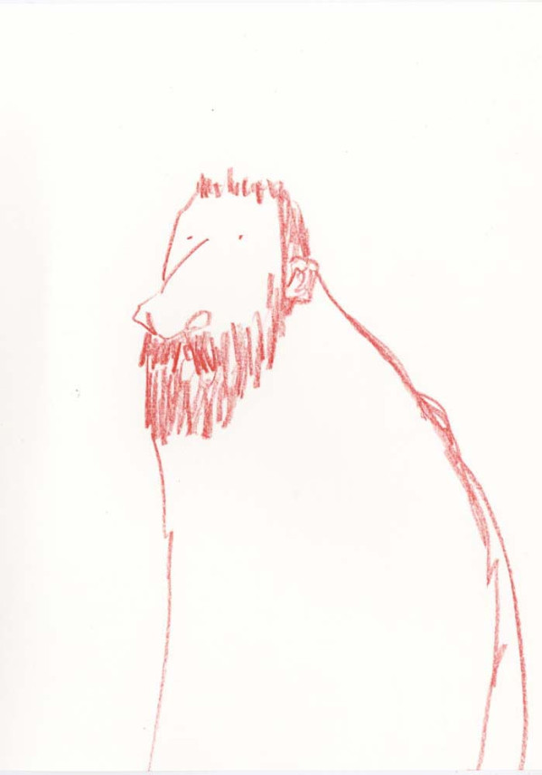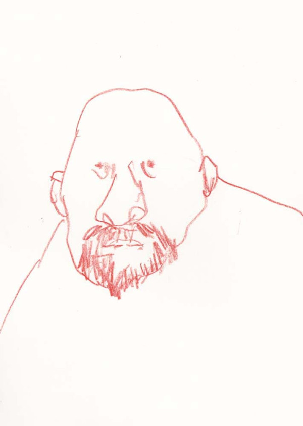 These portraits of imaginary gentlemen with luxuriant beards were created in February 2021, using a red chinagraph pencil in an A4 drawing book. The set shown here was selected from among over 60 drawings on this theme.