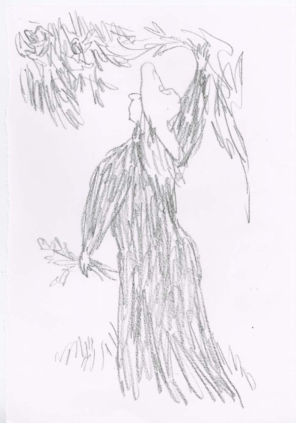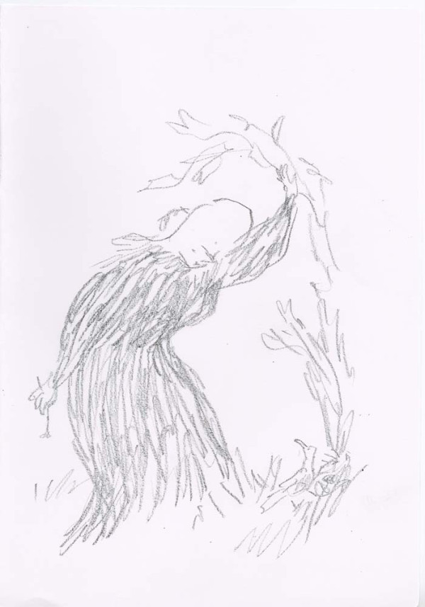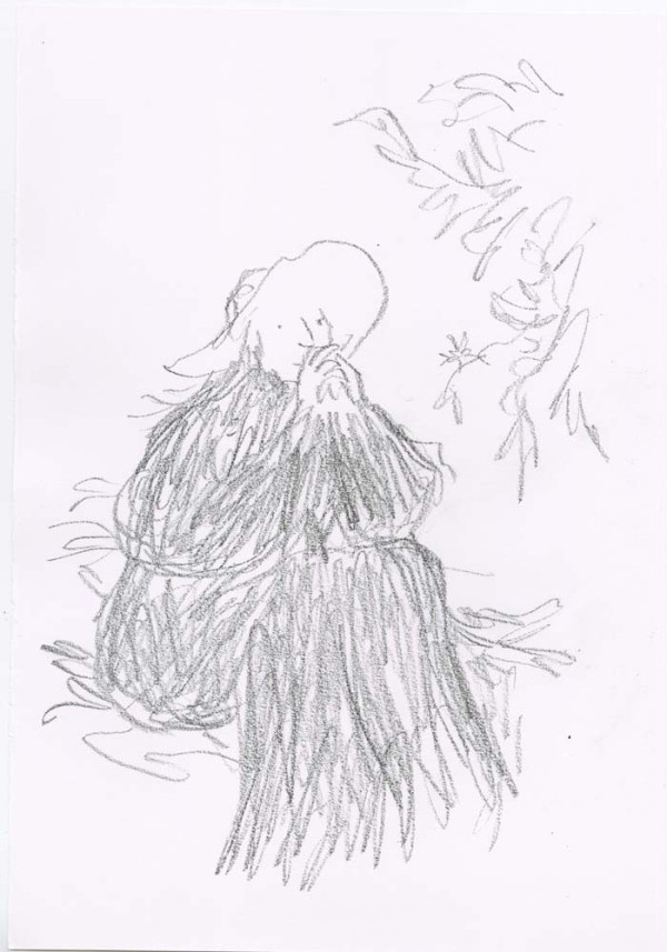 Shaded artworks filling an A3 drawing book, worked in black chinagraph pencil.