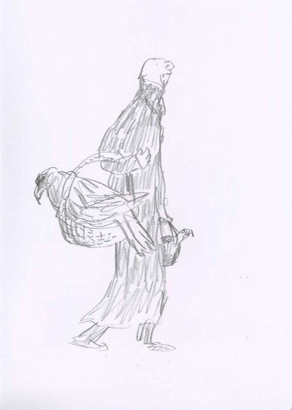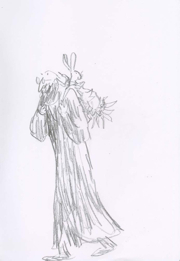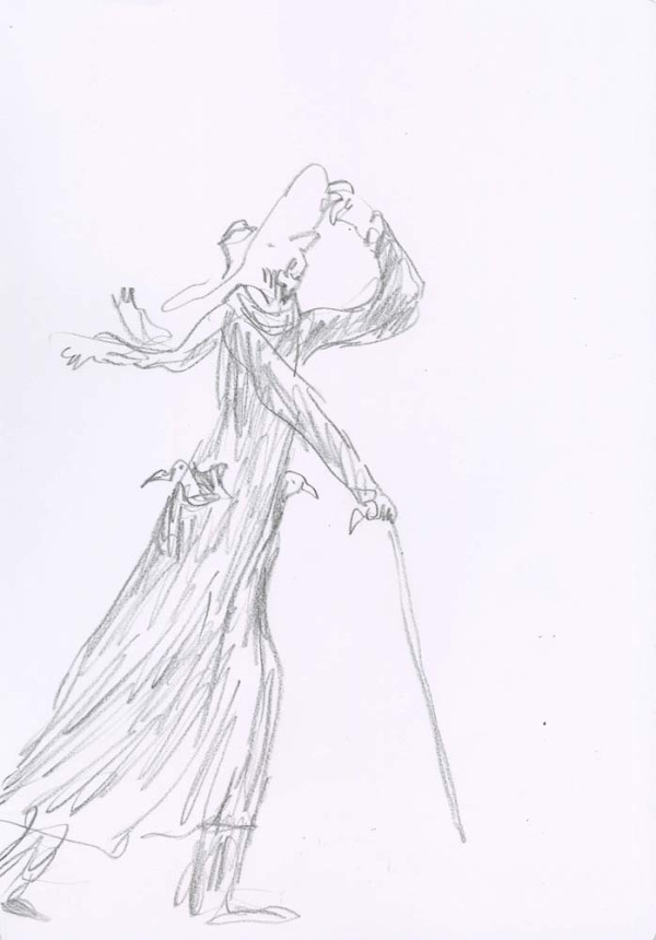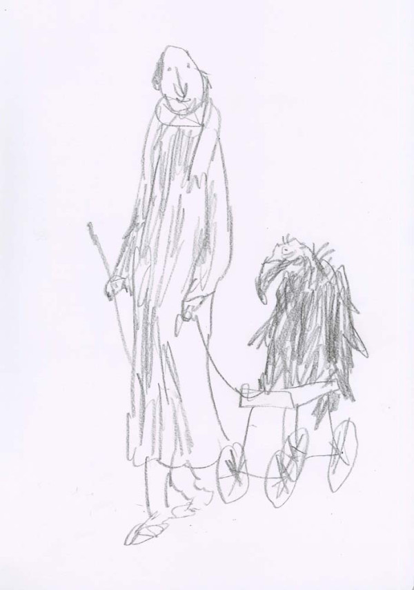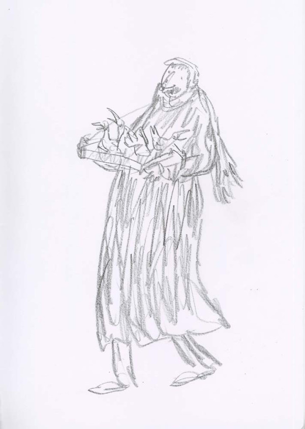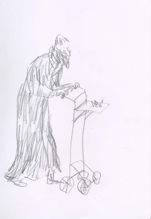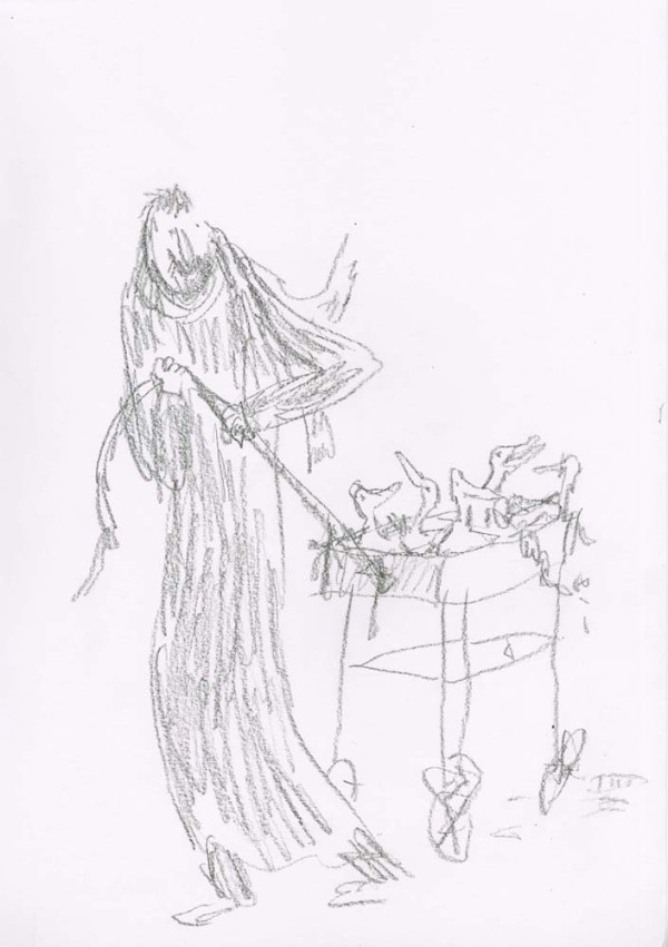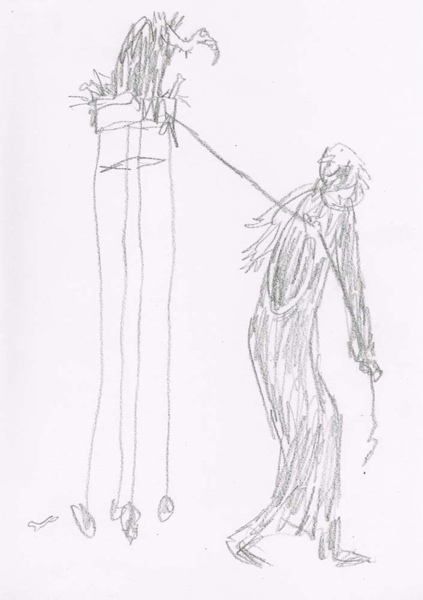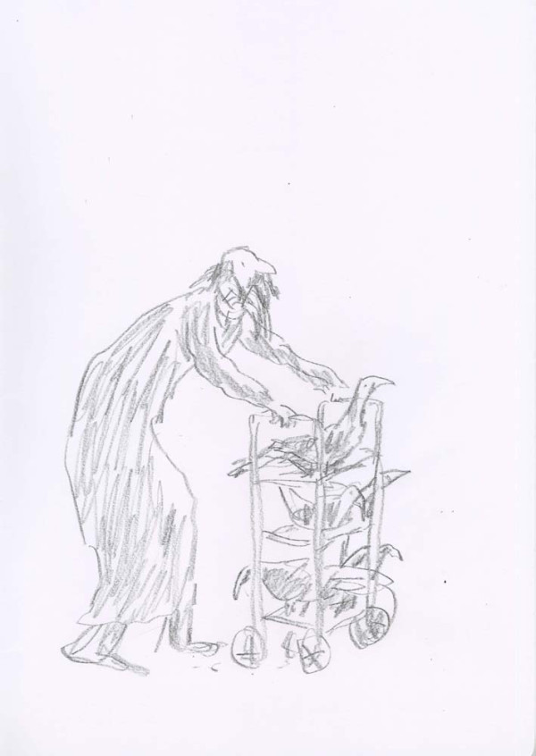 Shaded drawings in black chinagraph pencil, in an A3 drawing book.