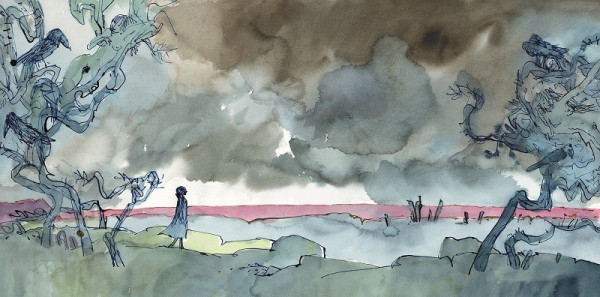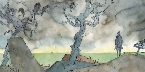 Though they share a surname, James is not even distantly related to Quentin. "I am so lucky to be able to work with him [Quentin] on this. I've always loved what he does," James commented on BBC's Newsbeat. As Quentin explained: 'I am not sure whether it is James having an effect on the landscape or the landscape having an effect on him but it was wonderful for me to draw those dark cloudy vistas and the strange trees ...At the time I produced the pictures James had not completed his work on the music and – it may just be fanciful – it would be nice to think that they had perhaps contributed in a small way to what we eventually hear.'