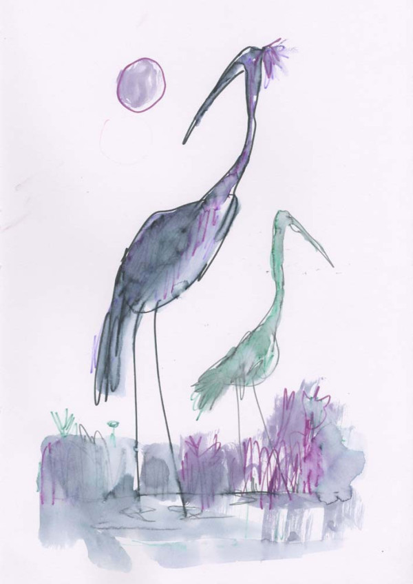 Quentin commented: “My last auction at Christie’s was made up of alternative versions of drawings that had been commissioned from me. There are one or two such items in the present collection, but in most respects it could hardly be more different. The great majority of these came into being of their own urgency, although if you are familiar with my work you will recognise certain familiar themes, and will not be surprised to come across an elderly gentleman and a wading bird taking a stroll through a pond together.”